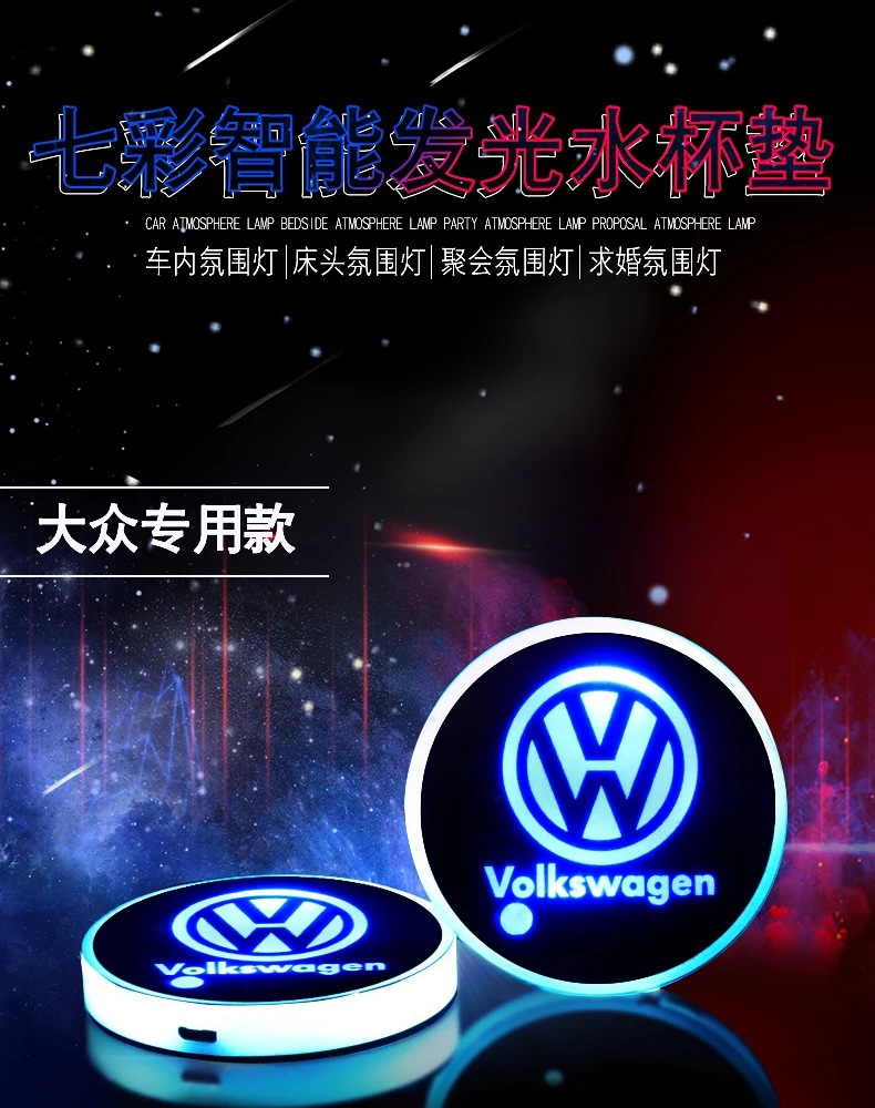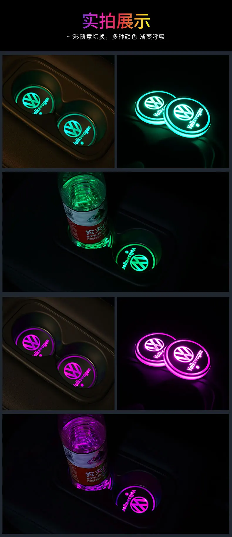 New 7 Color LED Car Cup Holder Light Luminous Coaster Water Cup Pad For VW Volkswagen Polo Jetta Golf Beetle CC GTI golf Passat